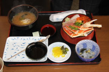 今まで,ここに入ろうと思っていてもたくさんお客さんが待っていてとても食べられなかったが,もう3月末でカニが終わりなので少し待つだけで入れました。