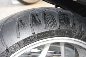 R1200の後輪からオイル漏れ。タイヤに付着して怖い状態に。