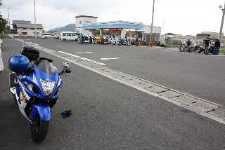 2つくらいのクラブの集合時間になっていたようでたくさんのバイクが来ていた。