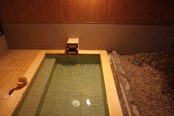 改装したばかりのようで檜の露天風呂やしっかりした手すりのある浴室。