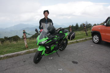 息子は給油していなかったので,宿の人に近くのGSを教えてもらって美ヶ原林道へ。