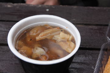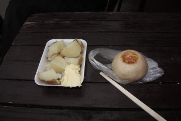 寒いので暖かい飲み物を飲みながら,展示物を見学。