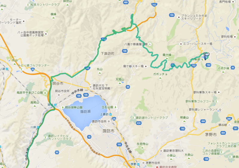 K192(茅野八子ヶ峰公園線)ここもビーナスラインですが,かなり路面が荒れていて端は怖いです。