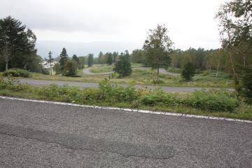 スキー場の間をさらに登っていく。ところどころ1.5車線の道もあるけど、センターラインのあるほぼ2車線の道。