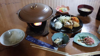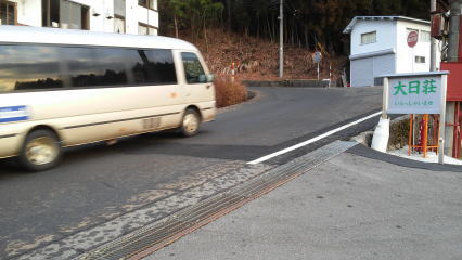民宿はしした バスの待合所がすぐ近く。(早めに行ってもバスの中で待つことができます)