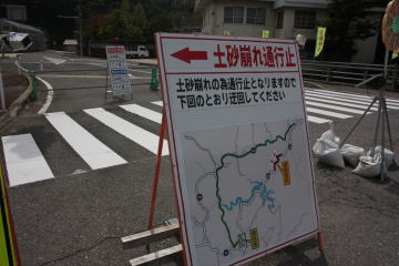 R186にでたところで、通行止め。標識通り迂回路へ。