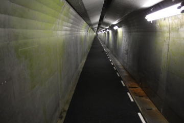 エレベーターで120mほど下におりて地下道を通ってダムの下へ。