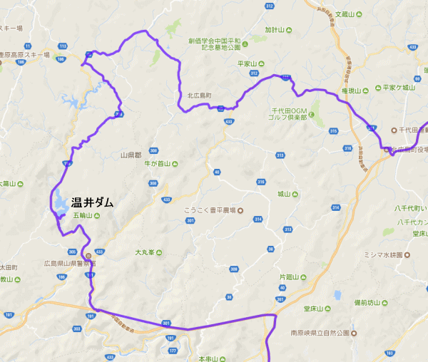 一番近い高速は中国道の加計BSスマート。山陽道なら高速ですぐ近くまでいけるが、そのままピストンではおもしろくないので、中国道を通って千代田ICから北側をまわって行くことに。