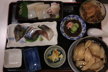 ホテルの駐車場内にある居酒屋にて夕食、(じゃらんでセットになっていた)定食+ビールで1000円はリーズナブル。
