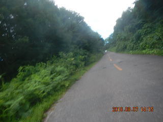 今度は南側の発荷峠を目指す。これからは標高が下がるから雨もあがるだろう。(という期待)