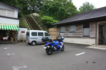 どうも東北道には、バイク用の駐輪場があまり整備されていない。仕方ないので木の下にバイクを止め、多目的トイレで雨装備へ。雨が激しい中出発。