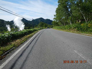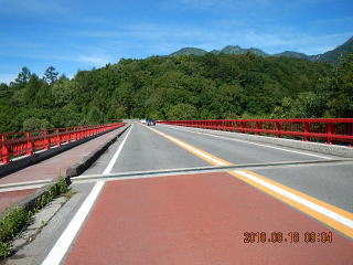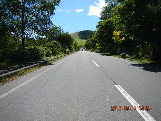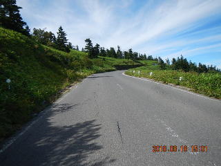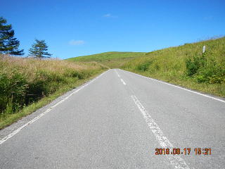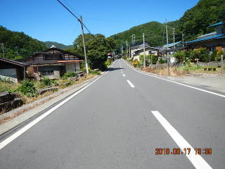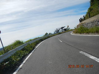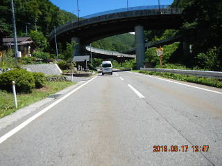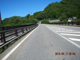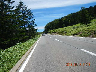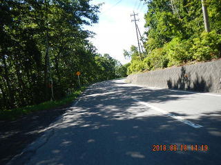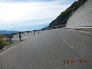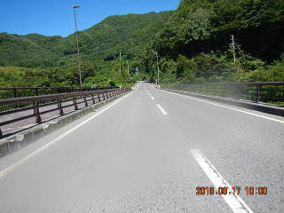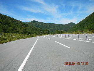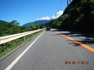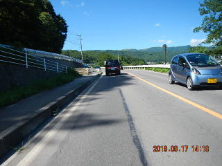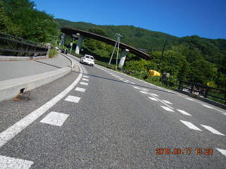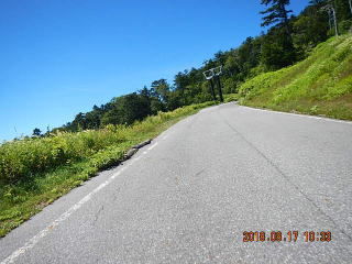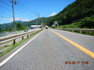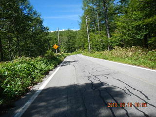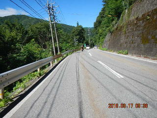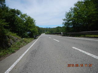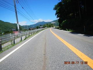 中央線はあるものの路面のうねりや穴があって気を遣う道だけど景色もいいし車も少ない(金曜としたら多いかも)ので楽しく走る。