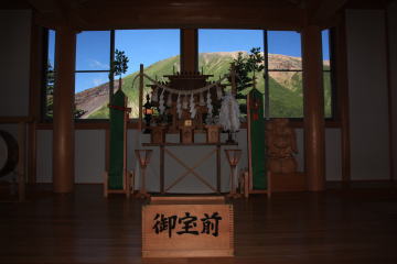 社務所の2階が御岳を見てお参りするようになっているのでお参り。私一人だったので、写真も。