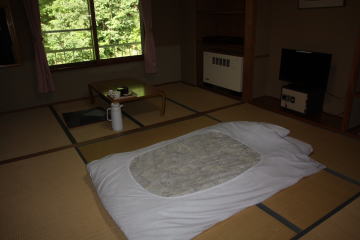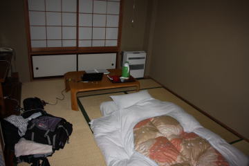 部屋はバストイレ付きの12畳あって今年の宿で一番広いかな。