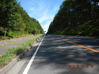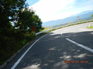 初めのうちはたくさんのコーナーで気持ちよく走っていたが、疲れてくると車幅1.5車線の中央に白線を引いて、舗装があれている道がつらくなってきた。(展望もあまり開けないしね。)とりあえず予定通り、茅野近くまできてUターン。