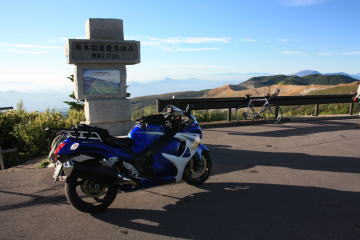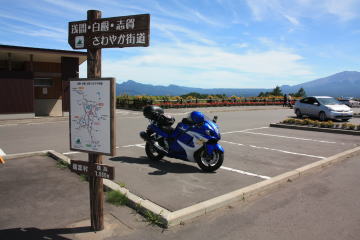 何回か来ているがやっぱり気持ちがいい。湯の丸高原で休憩をしながら、この後のルートを考える。かなり疲れているので距離を短くしたり(すでに充分走っている)きついコーナーの少ない道にしたいなあ。