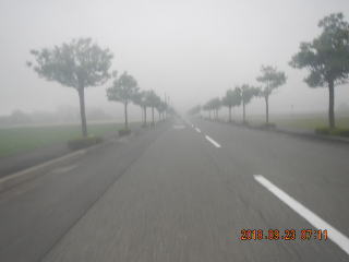 朝5時に起きる。窓の外は真っ白。霧か。なんか路面が濡れているような気も。