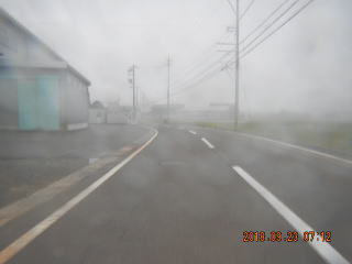 出発して、気のせいではなく、霧雨。