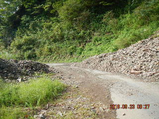 けっこう深い洗い越があったり、土砂崩れ(通れるように除けたのかな)があったりして気をつけながら下る。