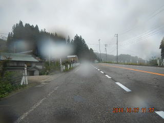 Tシャツや靴に浸みているが、たいしたことはない。なんとなく空が明るくなっていたような気もするので、前回信州の時に買ったヤッケを着て出発。降ったりやんだりなので、走っている間に濡れているのが気にならなくなる。このヤッケ800円くらいだったと思うけど、よく雨を防いでくれた。