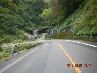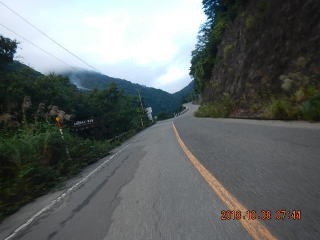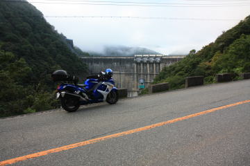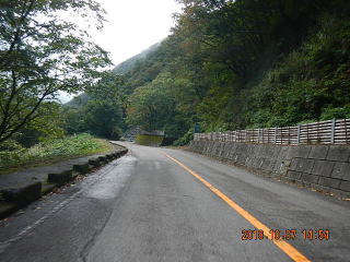 コーナーの楽しめるルートだけど、サスペンションを柔らかくして乗りやすくなったとはいえ雨なので怖い。