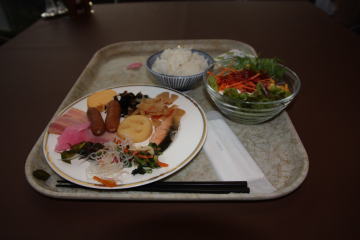 国体の人(役員の人かな)用に朝食が6時から。私も便乗させてもらって、早めに食べる。国体の人はさっと食べてすぐ出かけて行った。
