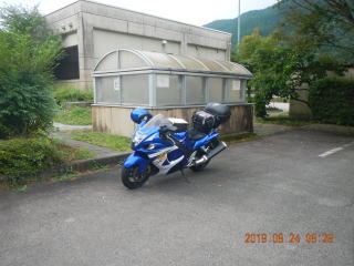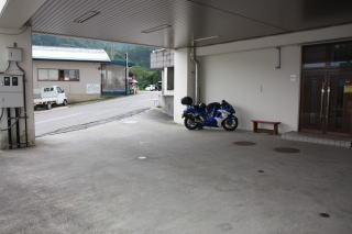 建物の下が広い搬入口駐車場になっていて、少しくらいならとめてもいいそうで、夜露の心配なくバイクが置けました。