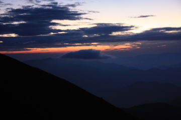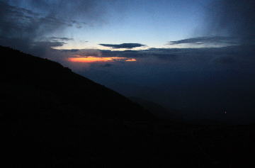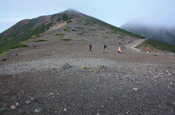 残念ながら、登ったときはガスの中で、星も見えません。