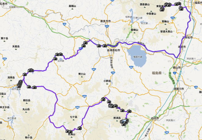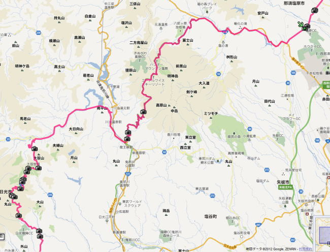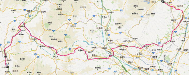 塩尻北ICから長野道、上信越道、関越道、北関東道、東北道を経由して日光宇都宮道の日光ICへ目指す。