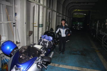 走り出す直前の車両甲板にて。
