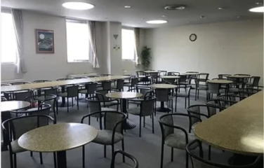 夜は定食を食べて2段ベッドで寝ます。
