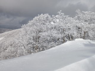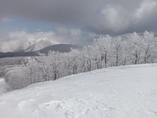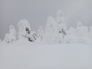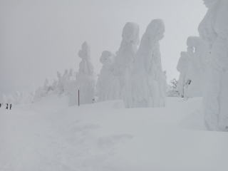 今年は何回か寒波が来ていて、週初めからの最強クラスの寒波。さぞかし樹氷も大きくなっていることと期待してさあ出発。