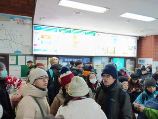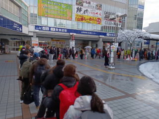 帰りの山形行きバスを待つ人たち。臨時便も出たけど50分待ち