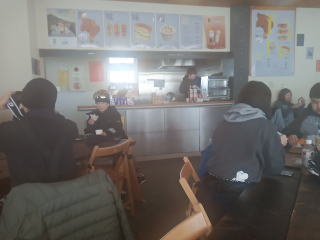 レストランで休憩。混んでたけど座れました。スキー客より樹氷観光客の方が多い。