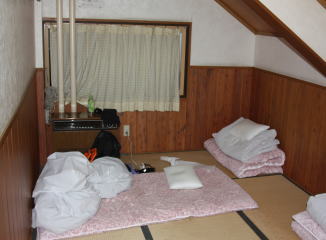 前もって電話で知らせてくれていたので、スキーウェアで寝る。