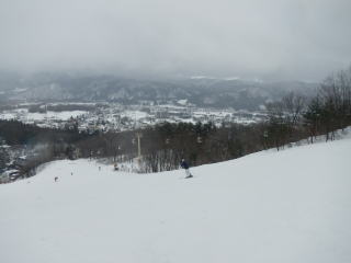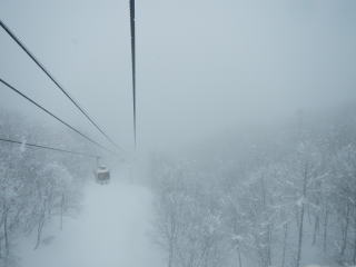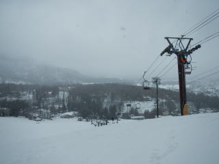 少し天気が悪くなり視界が悪い。ゴンドラを降りて、リフト乗り場を間違える。こんなに視界が悪いのは、危ないし楽しくないので、諦めてもう一度ゴンドラの乗って白樺ゲレンデへ。