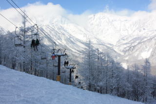 ゴンドラとリフト2つを乗り継ぐんだけど、どのリフトやゴンドラから白馬や遠くの北アルプスが見えて感動でした。