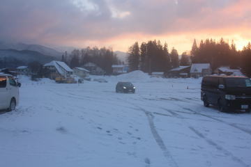 駐車場で片付け。明日は天気が良くなり岩岳でスキーと撮影できそうなので、そのつもりで片付けと準備。