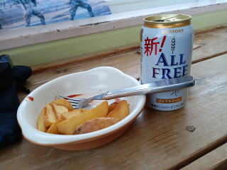 食堂でビールを飲んで、大きなベッドでゆっくり。