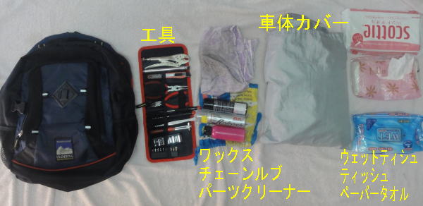 が入っている。宿で荷物を下ろしてから使うものを中心に。(工具は使わない方がいいけど)