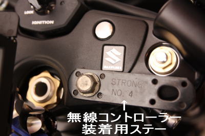 コントローラーはトップブリッジ固定のボルトをバイク屋さんが外に出るように交換してくれて,汎用ステーを取り付け,そのステーに磁石でひっつけてある。