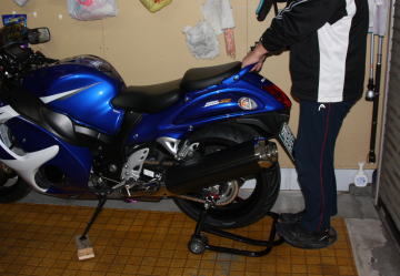 前に乗っていたハヤブサ(2000年式)は,オプションでメインスタンドがあったけど,今度のハヤブサにはオプションでもないようだ。