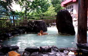 温泉(露天風呂 風呂からは夜汽車が走るのが見え,汽笛が感動的。)