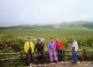 八島ヶ原湿原の駐車場付近では,車がつながっていたが,バイクではその横を通って,そのまま駐車場へ入れてくれた。路面は乾いていたが,雲がそこまでたれ込めているような天気でカッパを脱ぐこともできず,湿原を見学にいく。