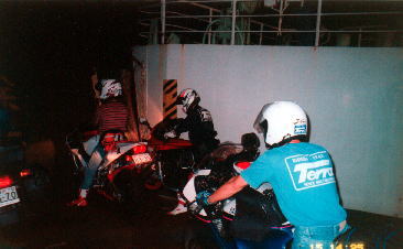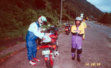 無事,夕方便に間に合い,船内でくつろぐ。ここで来年の話(2000年)をし順番を確認する。今回のツーリングのお疲れさまをして解散。お疲れさまでした。 |