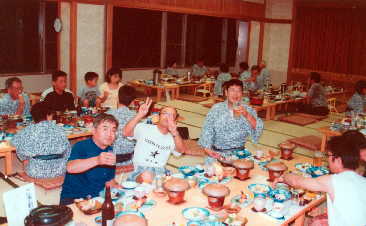 ホントは一風呂浴びて,さっぱりしてから食事にしたかったが,まっすぐ食堂へ。食堂に行くと私たちが一番最後。(当たり前)