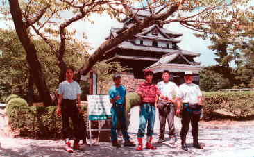 このあたりの水軍を指揮していた当時の城だということで,天守閣の登ると周りの島々や潮の流れなどもよくわかる。しかし,暑い。城の天守閣までは,しばらく石段を登り,そこからさらに城の中の階段を上る。登り切ったところは,涼しいのだが…。駐輪場(駐車場ともいう)では,降りた順にアイスを食べ,ジュースを飲んでいた |