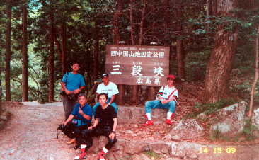 今回のツーリングの目的である三段峡へ。天気が曇ってきたせいもあって川の横を歩くと,涼しく感じる。川のせせらぎを聞きながら,歩く道は,なかなか気持ちがよい。三段峡はずっと遊歩道が整備されていて,一日でもゆっくり見ることができるようだが,私たちは30分ほどで切り上げる。 |